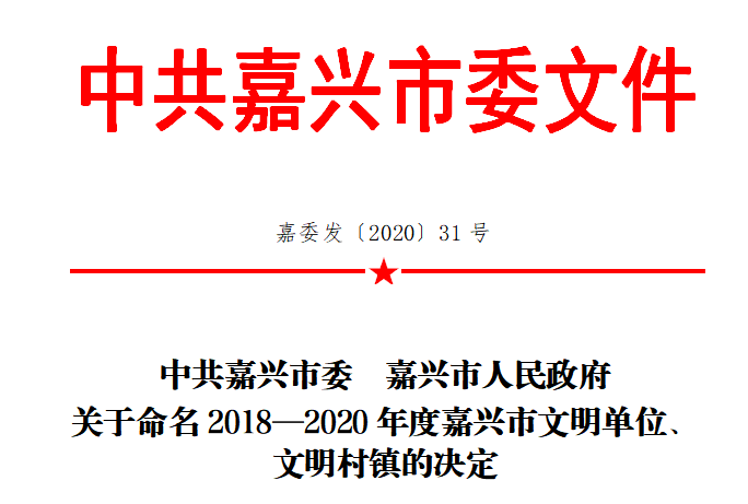 12月7日,中共嘉兴市委办公室印发了嘉委发〔2020〕31号《中共嘉兴市委 嘉兴市人民政府 关于命名2018—2020年度嘉兴市文明单位、文明村镇的决定》的文件,公布了2018—2020年度嘉兴市文明单位、文明村镇的名单,EVO视讯榜上有名。