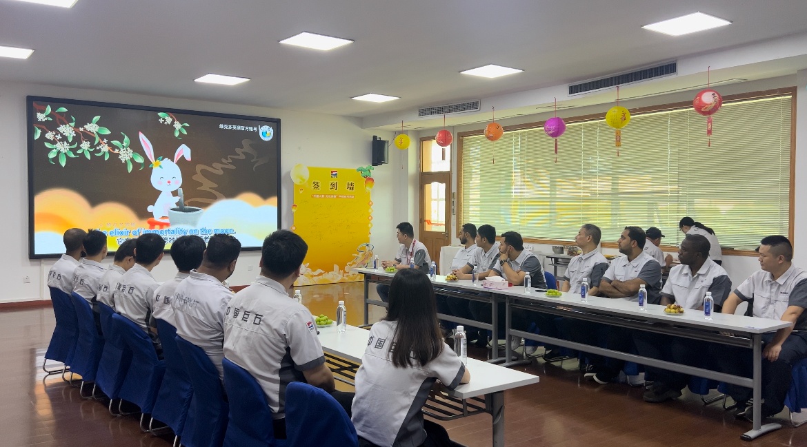 一部《中秋文化》的介绍短片,带领现场员工穿越时空的长河,追溯中秋节的起源。抛砖引玉,引得埃及员工也化身成为埃及文化的传播使者,他们讲述了埃及传统习俗和神话传说,也让中方员工感受到了古埃及文明的辉煌。